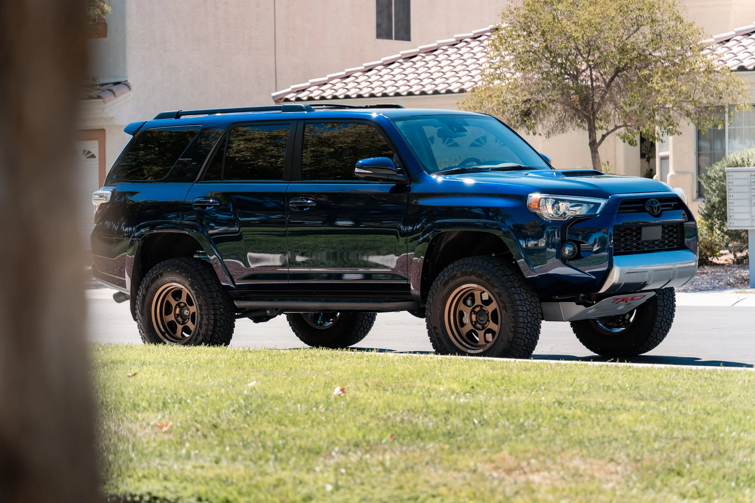 Ceramic coating is applied to your vehicle’s paint, trims, headlights, taillights, front windshield, and wheel faces for lasting gloss, protection, and easy maintenance.
